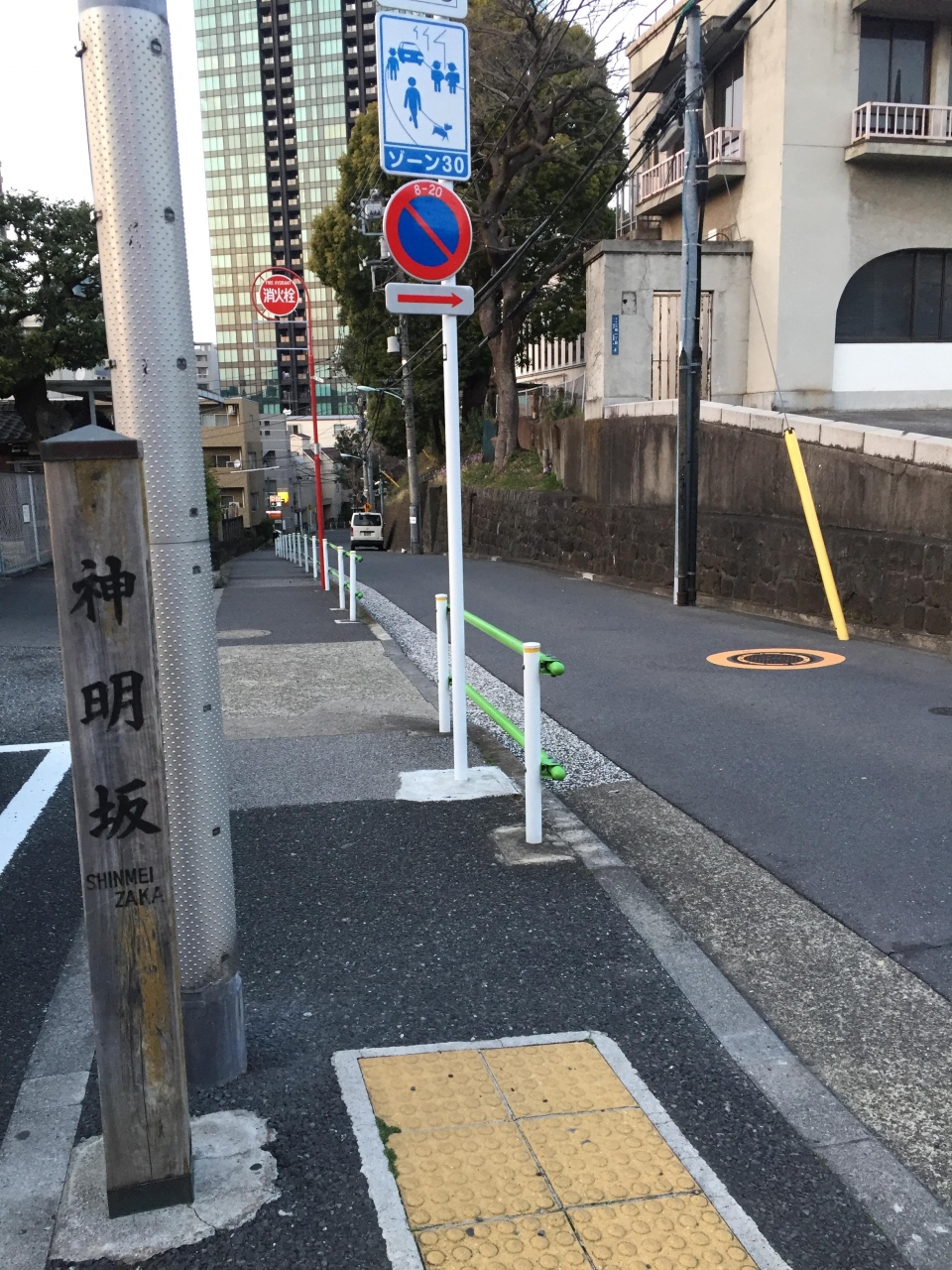 日向坂を上って、オーストラリア大使館や三井倶楽部などを眺め、うーん、この辺りはすごいなぁと思いつつ、こちらの坂を発見しました。歩道が整備されていますが、道自体は狭い道路になっています。けっこう長い坂で、下りは良いとしても登りは大変そう。特に自転車だったら相当かも。やや古めの標識が建っていて、そこに坂の名前と、由来が明記されていました。