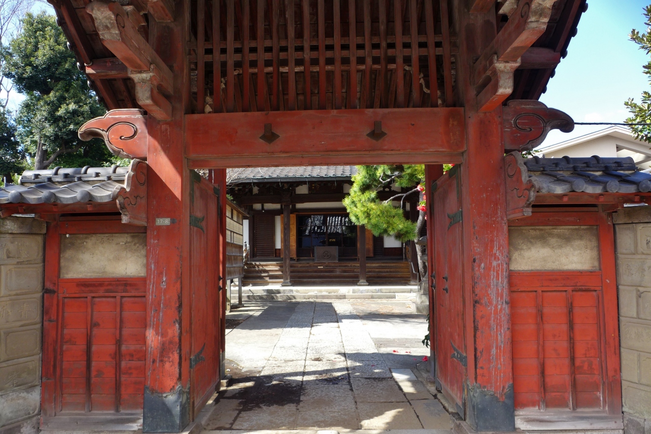 文京区小石川にある伝通院から山門の前を右手に歩くと道路の真ん中に大きな椋の木があり、その先にある下り坂の途中にこちらのお寺がありました。小さいながら朱色に塗られた山門もあり歴史を偲ばせる佇まいでした。