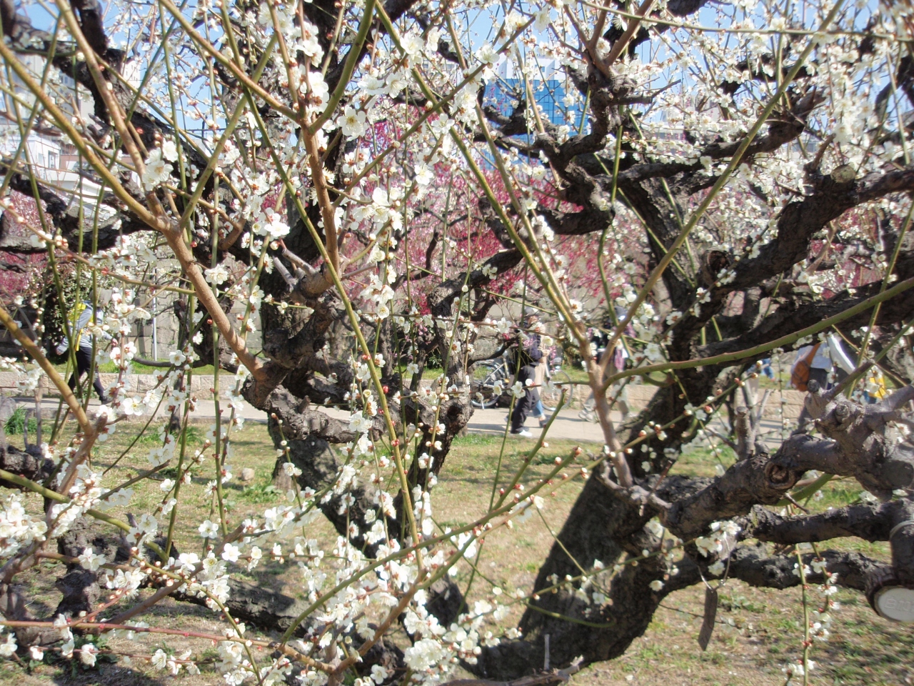 高津神社と一体となっている公園です。花の公園と呼ばれ、梅、桜の名所です。本数は200本ほどと多くはありませんが、赤、白、ピンク、枝垂れ等7分咲きで見事な光景です。思いのままという花弁の大きな梅を始めてみました。初めて見る梅もあり、充分満足できる観梅でした