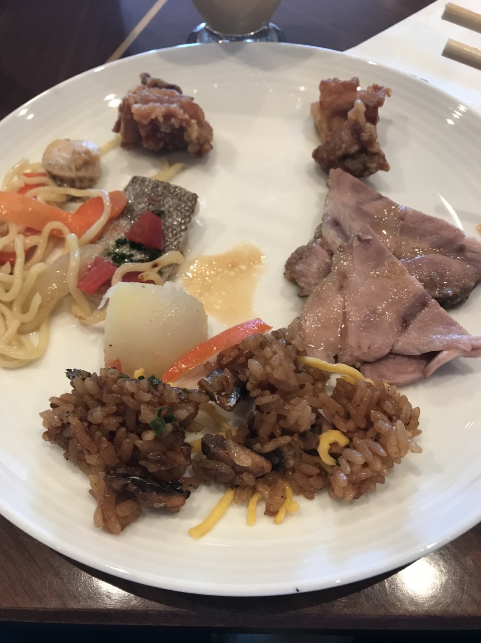 名古屋のマリオット アソシアホテルにあるレストランです。今回は北海道ビュッフェランチをやっていましたので、行ってみました。北海道の食材を使った和洋折衷の料理でした。どれもとても美味しかったです。デザートコーナーはとても混んでました。