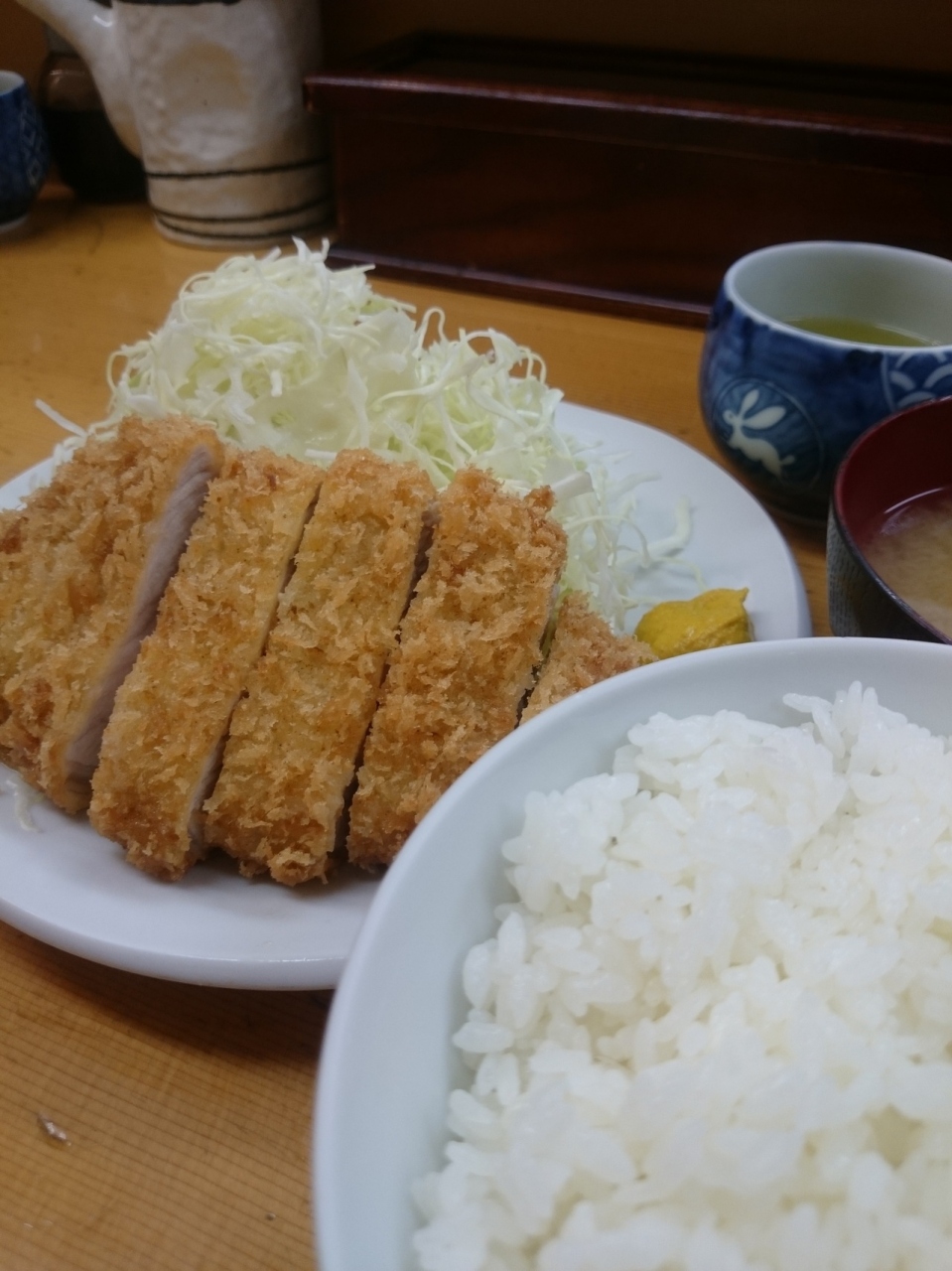 何か食べようと御徒町まで歩いてこちらのお店でロースかつ定食(750円)を頂きました。一階はカウンターのみで目の前で手際よく揚げられるとんかつを楽しく見ながら待つ事5分…サクサクとんかつとたっぷりキャベツ。750円でこのボリュームは大満足!!とつも美味しかったです。そして店内はまったく油臭さもなくとても綺麗にされていました。