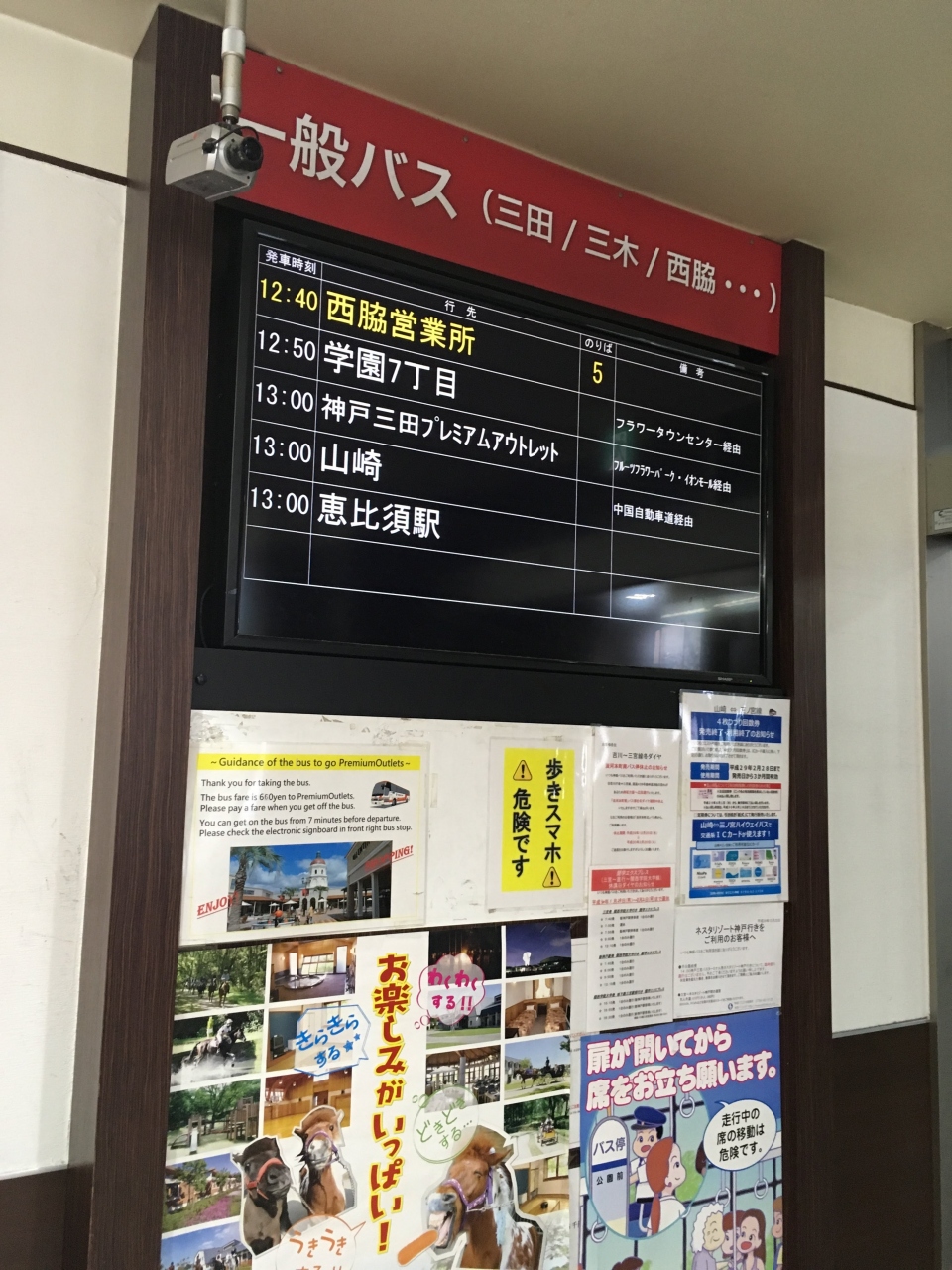 JRなどの高架下にあるので、とても狭いバスターミナルのせいか、直前までバスの近くにいけません。また、路線によってバスチケットを事前に買わないと行けない路線と、バス内で払うものが混在しています。また、電光掲示板で案内がされますが、初見ではわかりにくいので、結局その電光掲示板とにらめっこ状態になりました。
