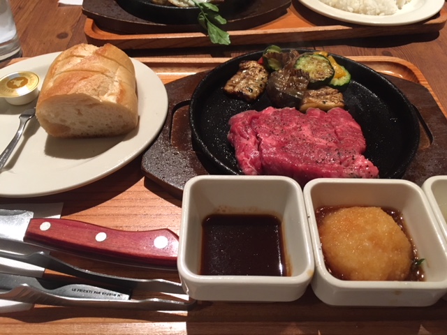 いしがまやではいつもハンバーグを注文しているが、この日はステーキを注文した。
