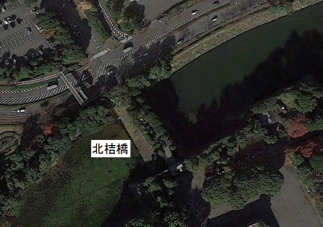 北桔橋は、現在は、両側の濠を渡るための土橋になっています。