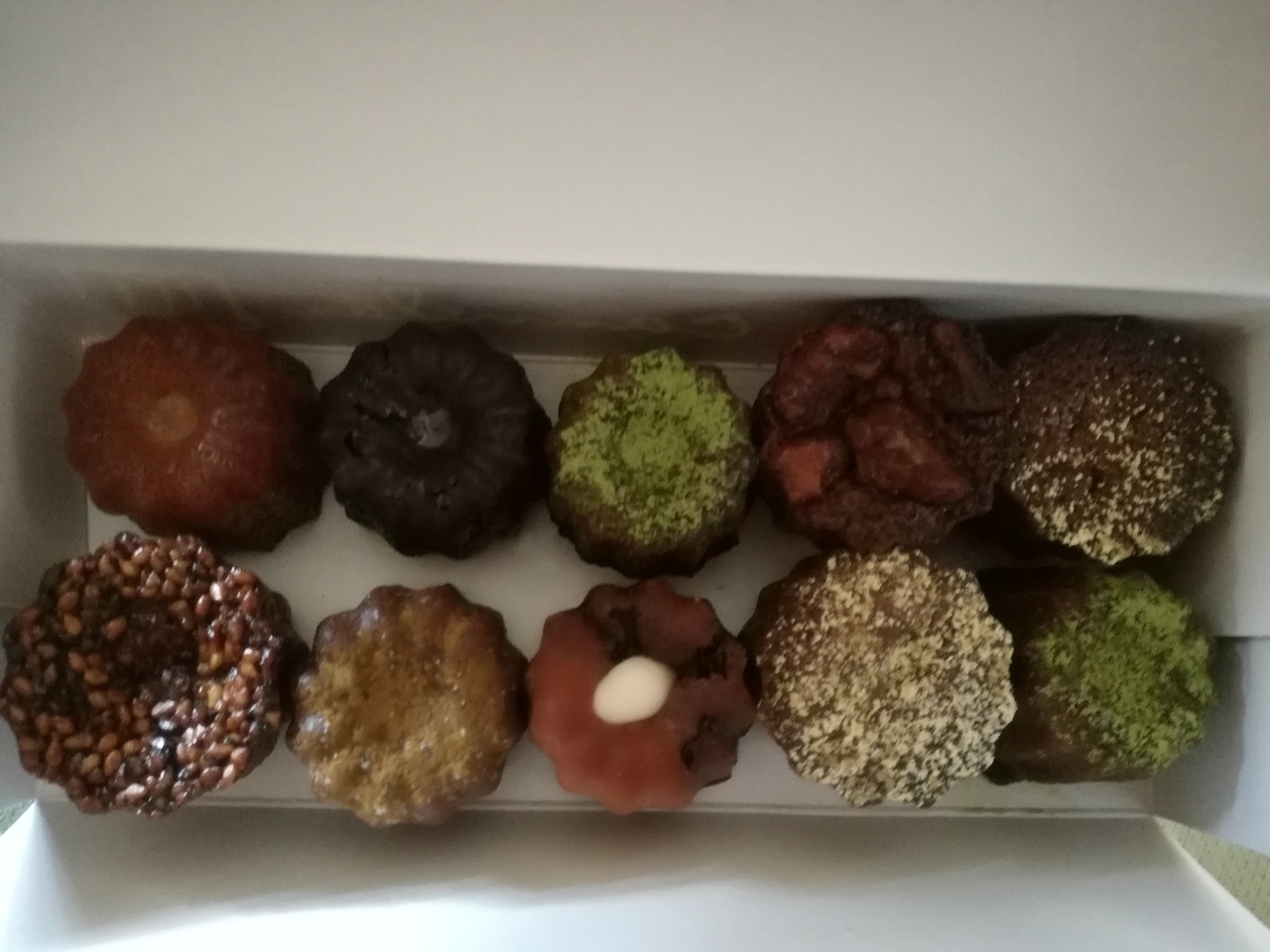 カヌレが有名で、前は1つずつ選べてましたが今は土日、祝日や繁忙期は2個、3個、4個、10個などしかなく種類が選べないのが残念です。