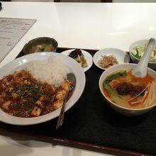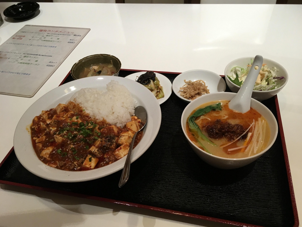 今日はランチで麻婆丼と担々麺(ハーフ)のセット注文しました。980円なり。
