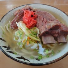 ソーキそばは、とにかくボリュームがすごい。とろとろの骨付き肉が二塊り、そばも大盛りかと思うくらいの量でした。