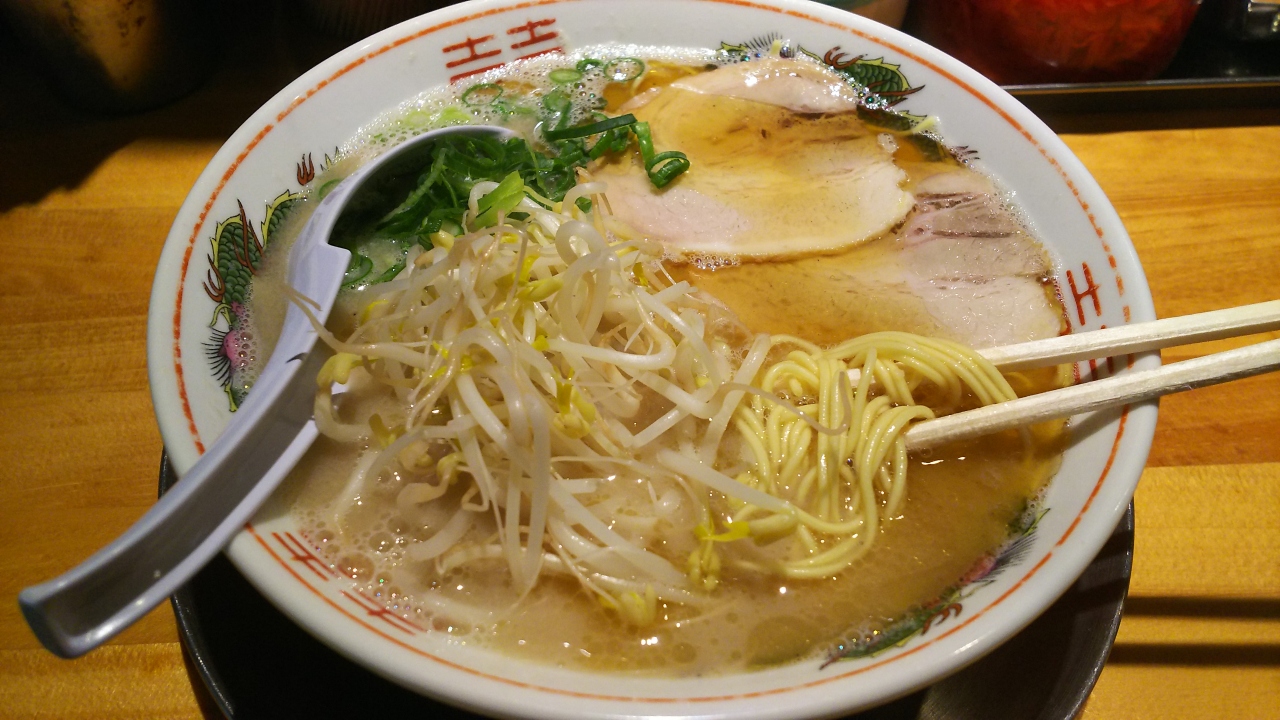 モヤシのトッピングがデフォルトの豚骨ラーメン、クセを感じない、誰でも美味しく食べられるラーメンではないか、と思います。