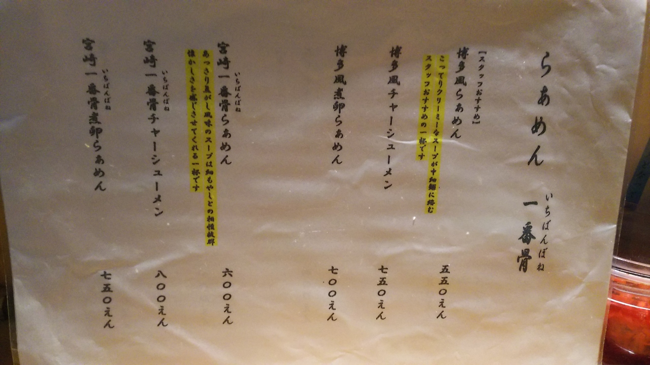 宮崎一番骨…宮崎の豚骨ラーメン?