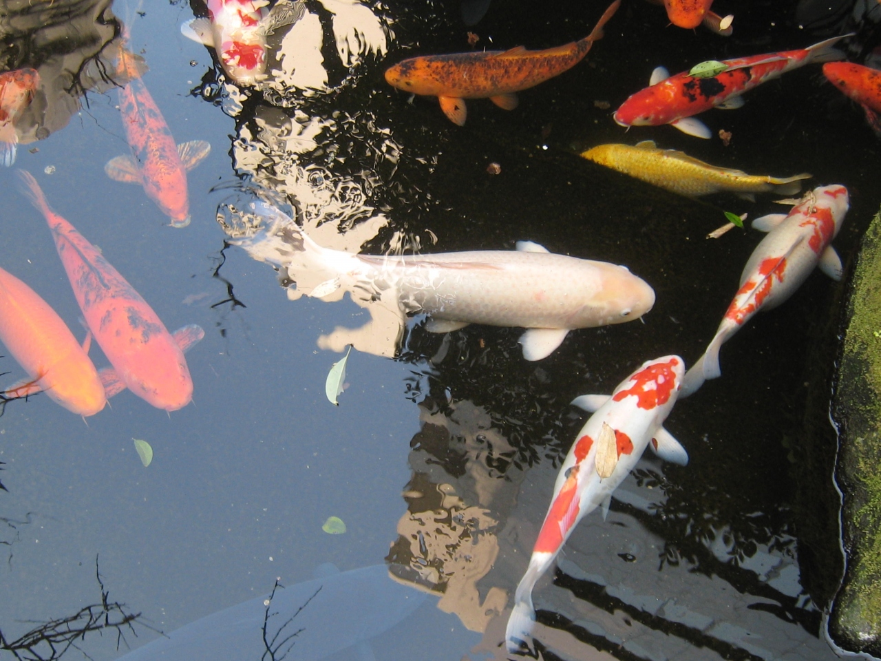 入口の小さな池のカラフルな鯉たちは大変綺麗でした。