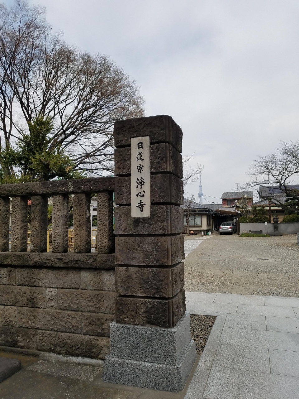 浄心寺は、江東区平野の住宅街にある日蓮宗のお寺です。木場公園から清澄庭園まで散策の途中に通り掛かり、立ち寄らせてもらいました。徳川家とゆかりが深いとのこと、寺院の多い界隈でも、敷地はかなり広くその存在の大きさを感じます。