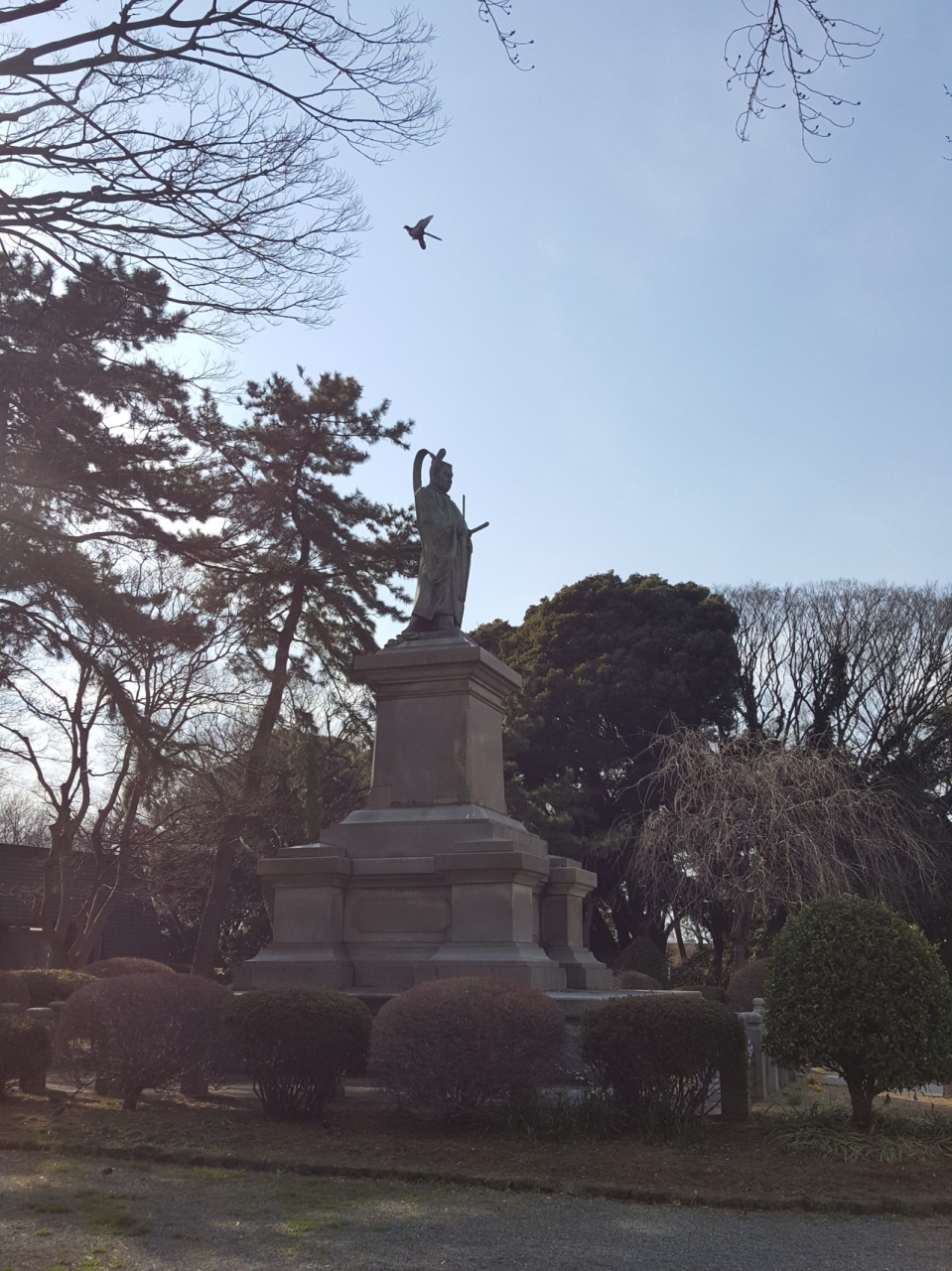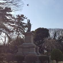 1909年、初代の銅像が建ちましたが関東大震災でも倒壊せず(ちょっと視線がずれたみたいですが)立ち続けたそうですが第二次世界大戦のときに回収されてしまい現在の像は昭和29年のものだそうですが、台座部分は1909年のものだそうです。
