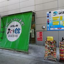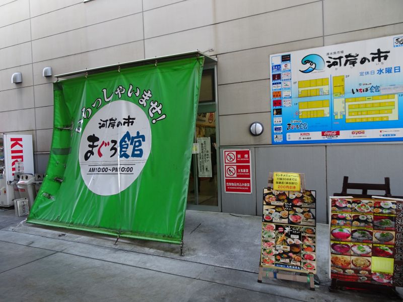 「河岸の市」のまぐろ館は、海鮮レストランに特化した建物。1回2階に同じ形態のレストランが密集しています。店の前にタレントのサインが誇らしげに飾られている店もちらほら。