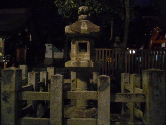 八坂神社の境内にある末社の一つ、悪王神社の隣にあります。立ち寄りやすい場所にあります。平安時代にこの地であった、白河法皇と平忠盛にまつわる逸話が伝えられています。ごくふつうの灯篭に見えましたが。八坂神社は本殿だけでなく、このようないろいろな見どころが多くあります。