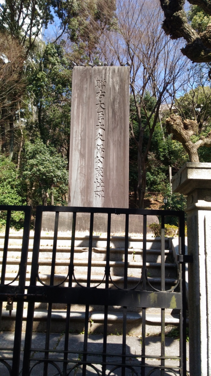 ニューオータニのアーケード街の向かい側にある公園です。昔は清水がわいていたということで、清水谷公園というようです。この公園には、明治11年に紀尾井坂で暗殺された大久保利通を哀悼する碑が建てられています。明治の20年代に大久保を知る人たちが建てたようです。近代日本の礎を作った大久保に思いをはせることができる公園です。