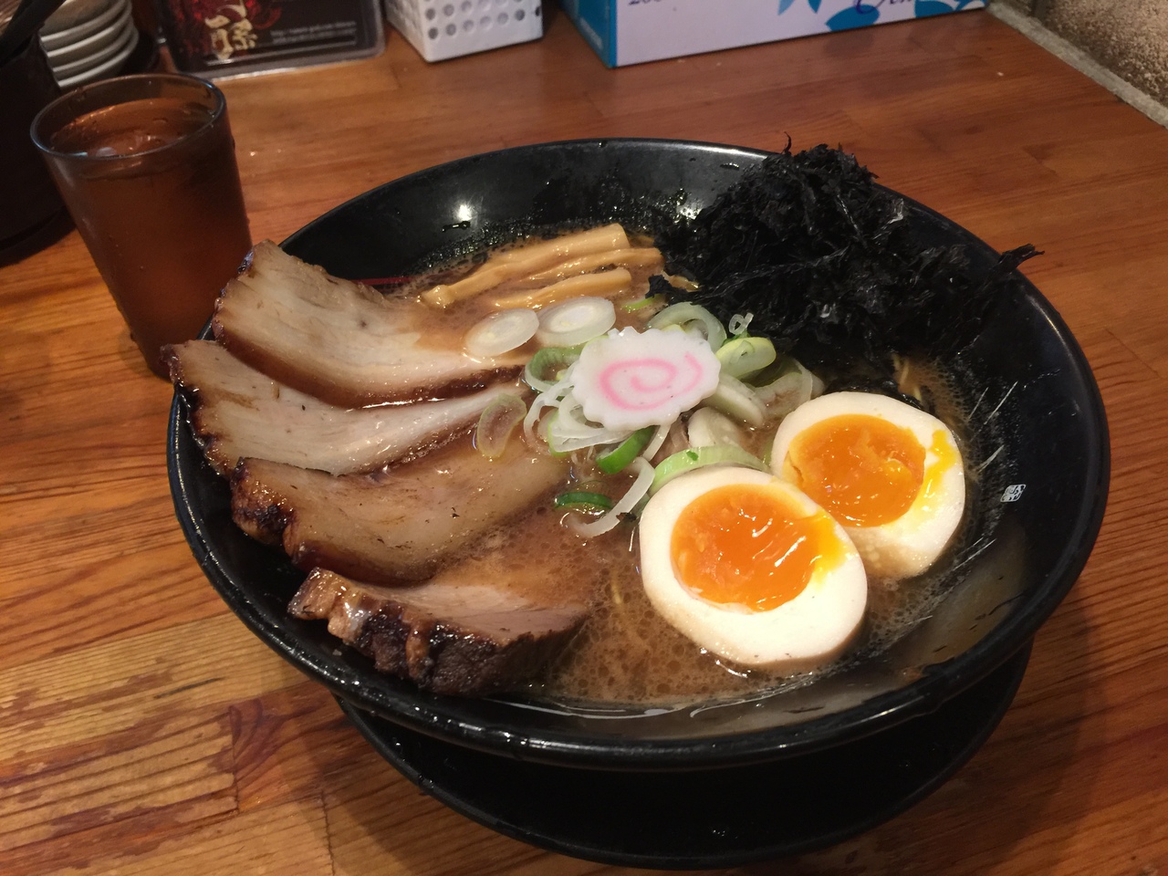 食べたのは豪華濃厚豚骨ラーメン1,080円!チャーシュー、煮卵、、、豪華です(^ ^)