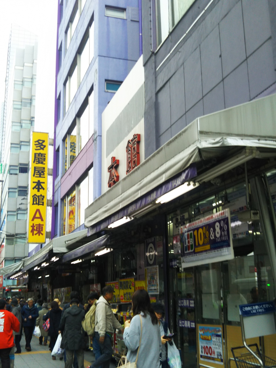 御徒町駅、昭和通り沿いにある、紫色のビルといえば多慶屋です。台東区民ご用達のショップです。食料品や化粧品、薬、家具など何でもあり、しかも安いです。表には特売品が並んでいてついつい買ってしまいます。支払いレジがリニューアルしてスムーズになりました。