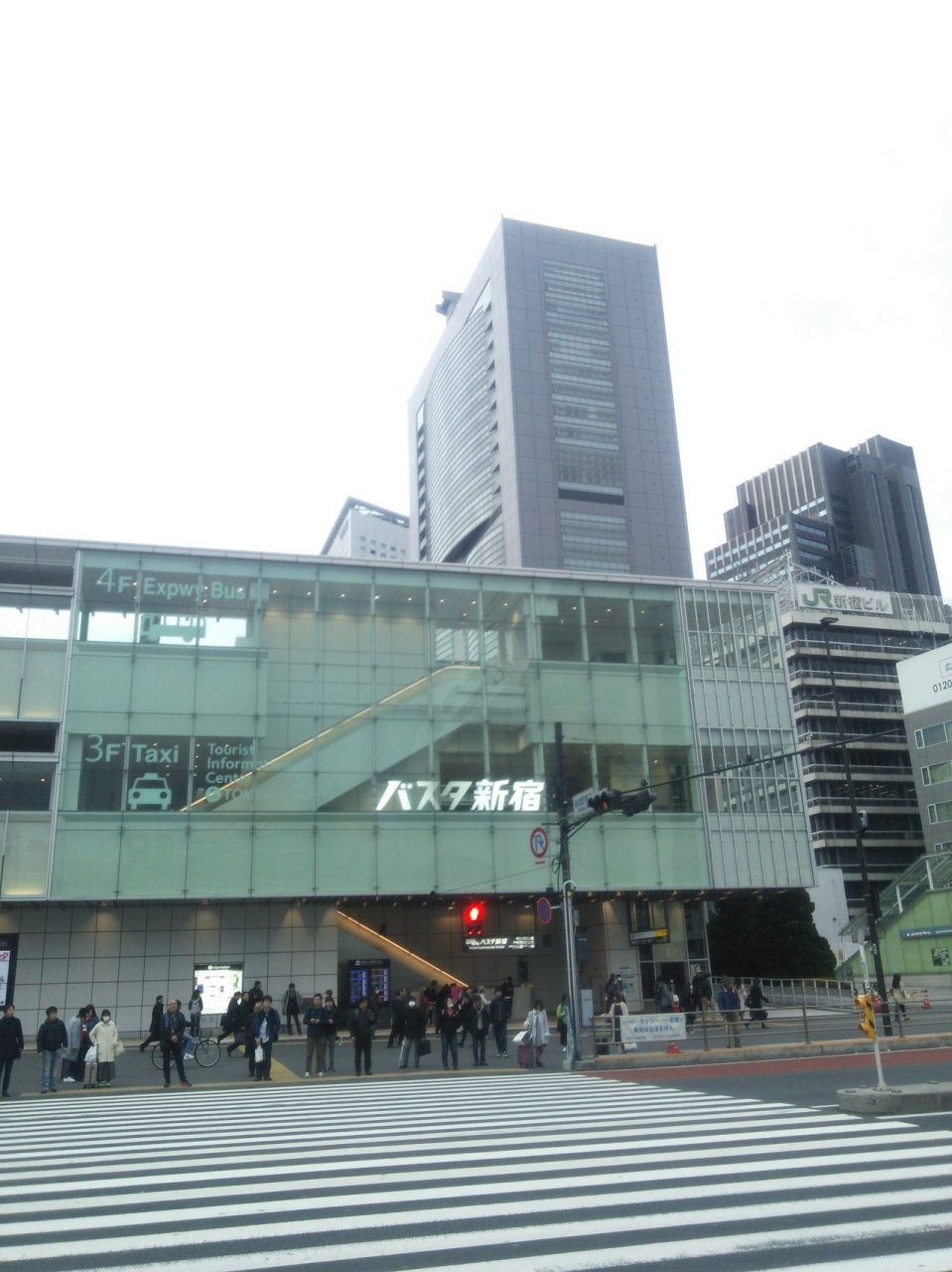 バスタの行き方として迷わず分かりやすいのは、JR新宿駅の南口です。南口の改札口を出て、甲州街道の横断歩道を渡ると目の前にある建物の4階がターミナルです。