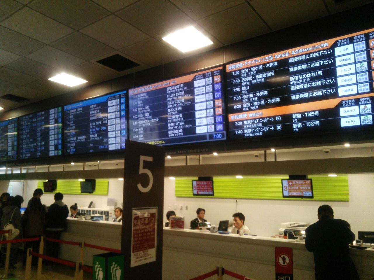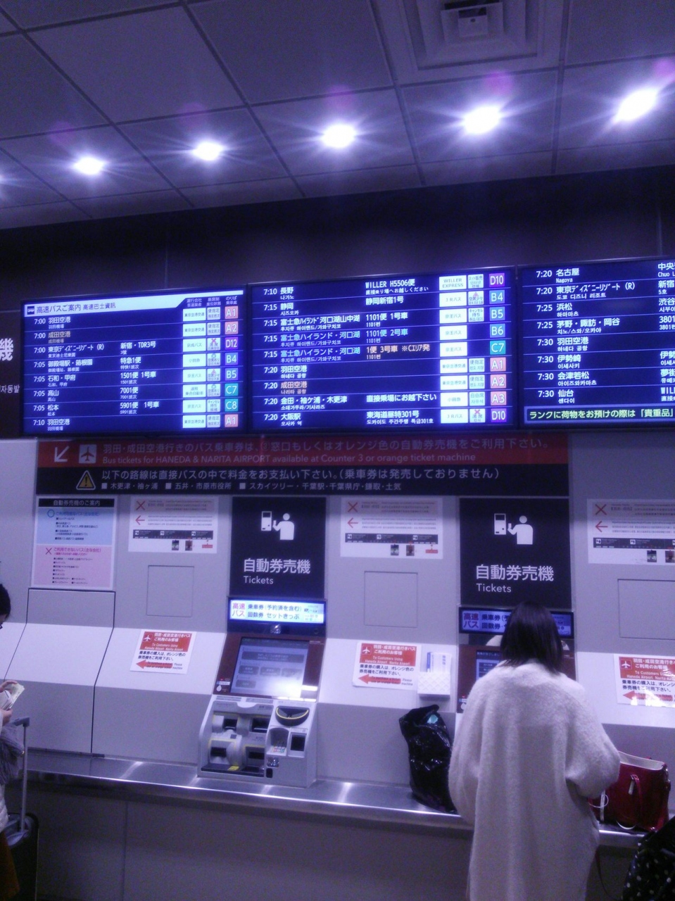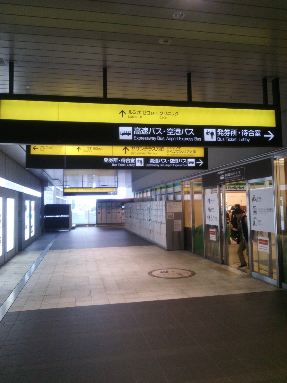 初めて利用する方は、少なくとも10分前には到着しておく必要があると思います。そして平日でも朝方のピーク時には、女子トイレもかなり列をつくることもあります。事前に新宿駅や商業施設のトイレを利用してからをオススメします。また、ターミナル内にはファミリーマートがあり便利です。