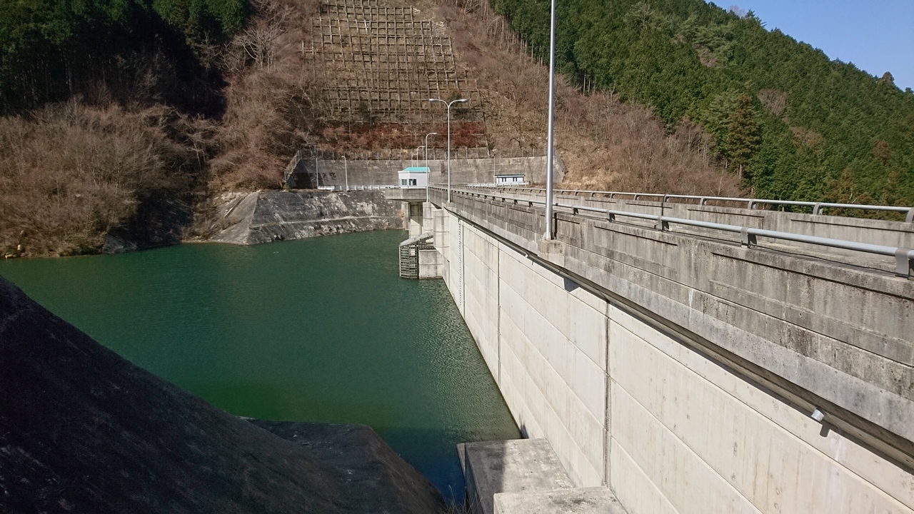 三森山、水晶山の登山口である岩村ダムはダムとしては小さめダムでした。重力式のコンクリートダムで堤の高さは36mほどです。