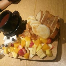 スナック・マシュマロ・フルーツでいただくチョコレートフォンデュで、1時間食べ放題(ワンドリンク別)。