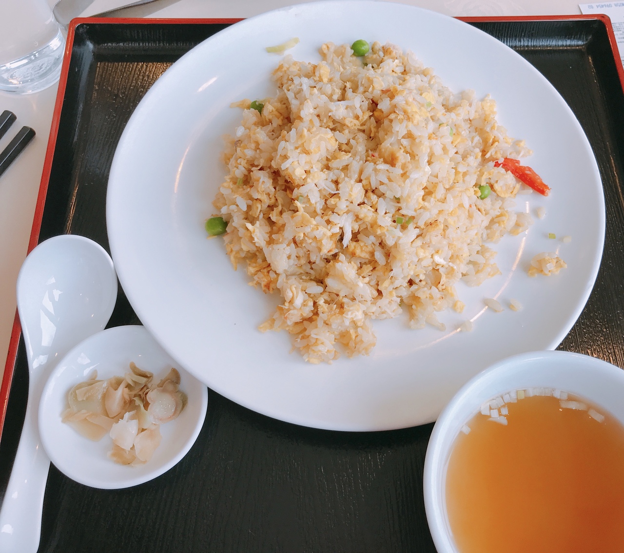 塩味のエビスープはエビがぷりぷりでした。カニチャーハンはご飯が程よくパラパラしていてカニの味がとても美味しかったです。