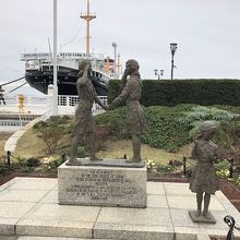 横浜みなとみらい線「元町中華街」駅の一番近い出口から徒歩2~3分、山下公園内にある銅像です。丁度、氷川丸の前にある庭園の中にあり、今まで何度もきているのに気がつかなかったです。とても表情豊かな作りの像で、可愛らしいです。