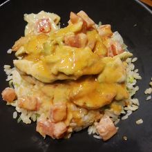 セノバ3Fフードコートの炒飯店です。海老とアボカドの炒飯をいただきましたが、揚げた海老にカットトマトとマヨネーズの強めな味付け、アボカドスライスがパラパラっとしたチャーハンにかかってよいお品でした。映画半券でサラダ・ソフトドリンク・杏仁豆腐から選べる1品サービスもウレシイですね。