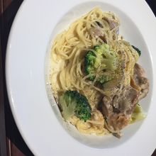 ケーキが目当てで行ったのですが、パスタのクリームがしつこすぎず大きめの鶏肉やブロッコリーがゴロゴロ入っていて美味しかったです。もちろんケーキも良かったですよ。