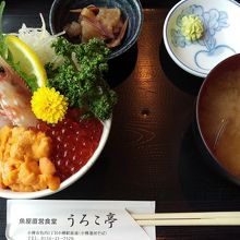 一階で魚屋さんを営んでいるだけあり、新鮮で美味しかったです。どんぶりは大きさが選べるので旅行で色々と他の物も食べなければならない胃袋にはちょうど良いサイズが選べて良いかと。お水、お茶はセルフサービスでした