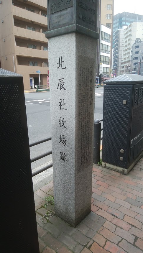 飯田橋から九段に向けて散策した時にこちらの石標がありました。現在は東京でもど真ん中の千代田区で政治、経済、商業の中心地でありますが、そんな場所に牧場があったと思うと、ある意味で日本の発展ぶりを感じます。幕臣の榎本武揚が明治初めにこの地に牧場を開き、乳牛40~50頭が育成され、牛乳などがつくられていた。氏は幕臣の子弟のための農業を学ぶ場を設置したり、この北辰牧場をつくったりしました。現在のこの地の風景からすると想像できないです。