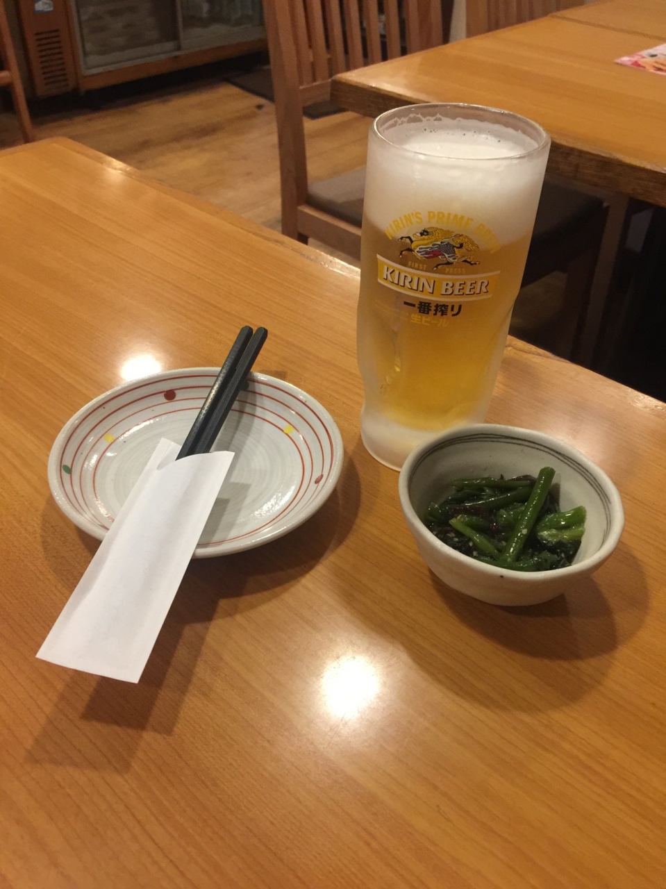 飲み放題2時間1,100円をたのみ、先ずは生ビール!