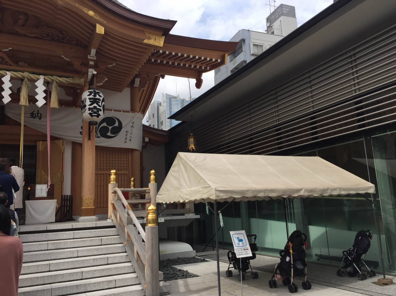 ベビーカー置き場も完備している点などは、水天宮の参拝者を意識した心遣いです。