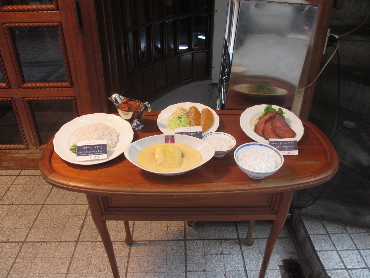 王ろじに行ったら本日休業の張り紙が貼ってあってので、こちらのお店に行きました。本店に行ったのは約30年ぶりです。極辛カレーとロールキャベツのセットを頼んでビールをのみました。ビールとロールキャベツだけ先に出し、カレーライスは後に出すなどという配慮は全く期待できないお店でした。全て同時に出てきました。