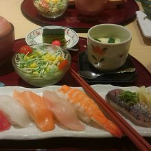 駅ビルでランチをと決めていたのでパルシェ6階に上がり”おいしそうだ”幼児も食べられるメニューもあるから、すぐ決まりました。鮨のネタが新鮮でとてもおいしくいただきました。4歳の孫はサーモンが大好きなようで、”サーモンを炙ってください”と注文すると、親切に1貫だけでも炙ってくださいました。黒はんぺんは初めていただきました。これは、愛媛宇和島の”じゃこてん”のような感じでした。
