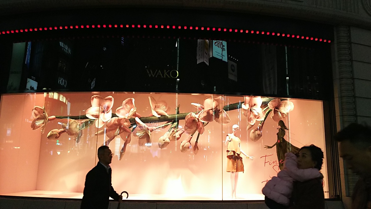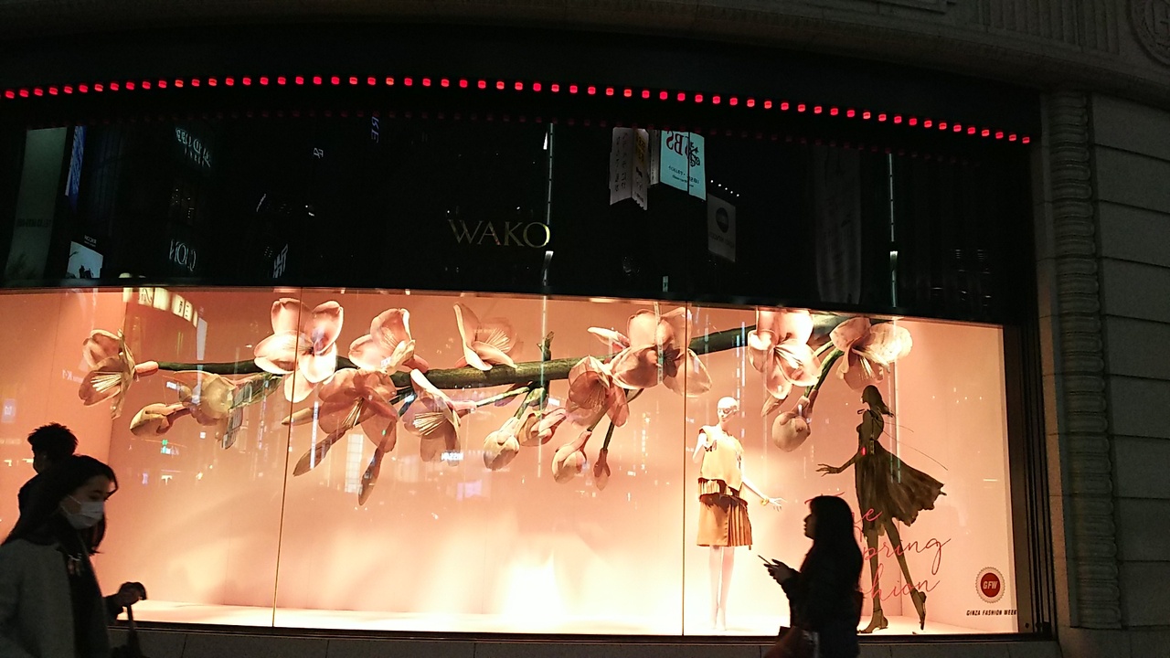 前回紹介したGINZA Flower walk 三越のお向かい銀座和光のショーウィンドウのさくらです!