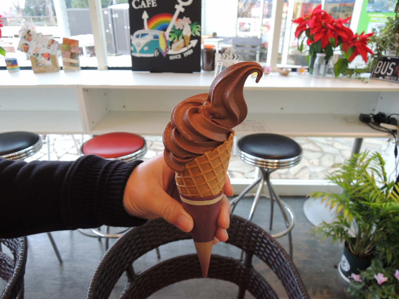あげパンソフトで有名なお店ですが、主人がソフトクリームが食べたいというので、生チョコのソフトクリーム 400円をオーダー。
