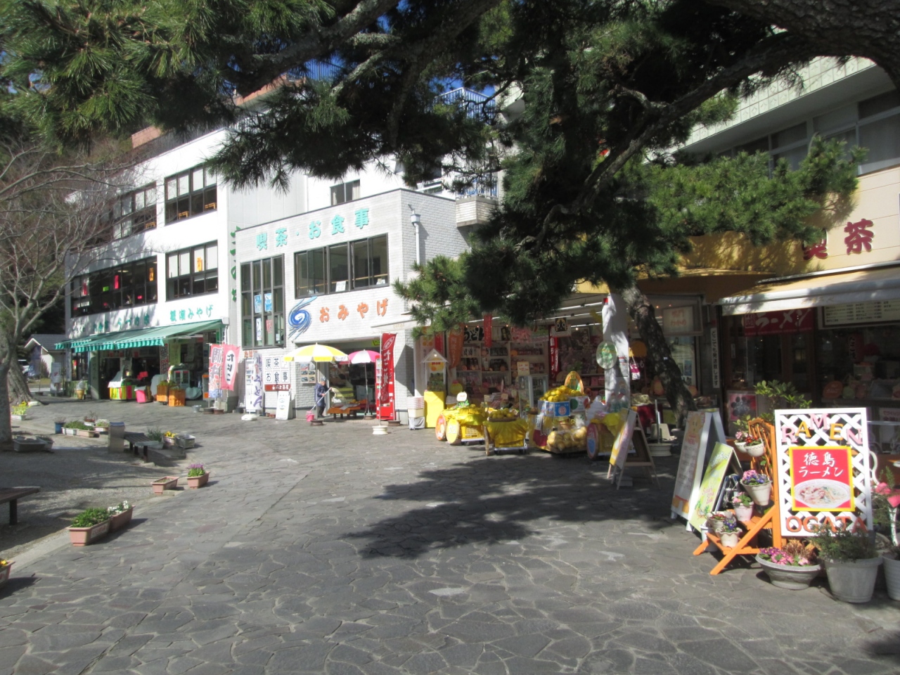 展望台周辺には食事処や鳴門名物のワカメ、竹ちくわ等のお土産屋が並んでいます。