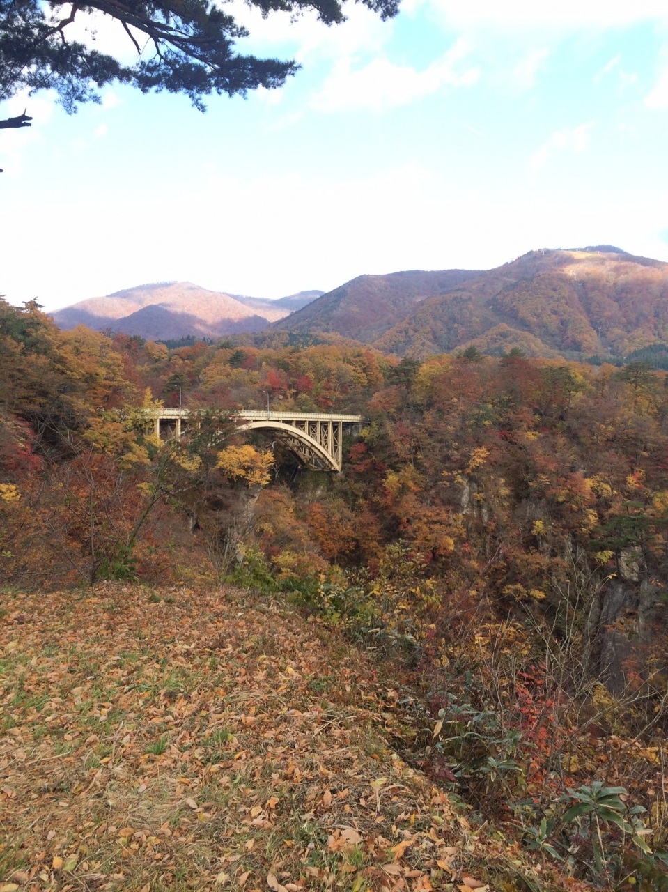 山々に鮮やかな紅葉を見ることができる名スポットです。バス駐車場から周辺を歩くことができ橋の上からが写真スポットです。タイミングがよければトンネルから出てくる鉄道を写真に収めることもできます。またレストハウスが充実していてお土産もここで揃います!