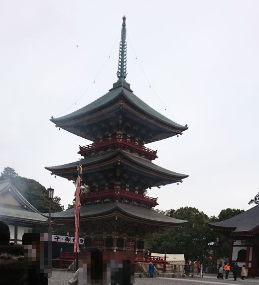 成田山新勝寺の仁王門をくぐり、境内に入ると右手に三重塔がありました。1712年に建立され、総高は25mあるそうです。見上げると垂木に色鮮やかな模様が施され、とても美しかったです。国の重要文化財に指定されているのも納得です。