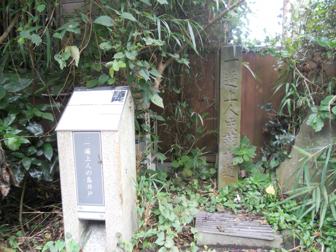 説明の石碑には「一遍上人の島井戸」と刻まれています
