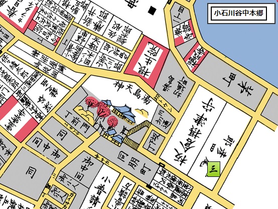 江戸名所図会によると、南側の妻恋坂に至る参道には、多くの盛り場があったようです。