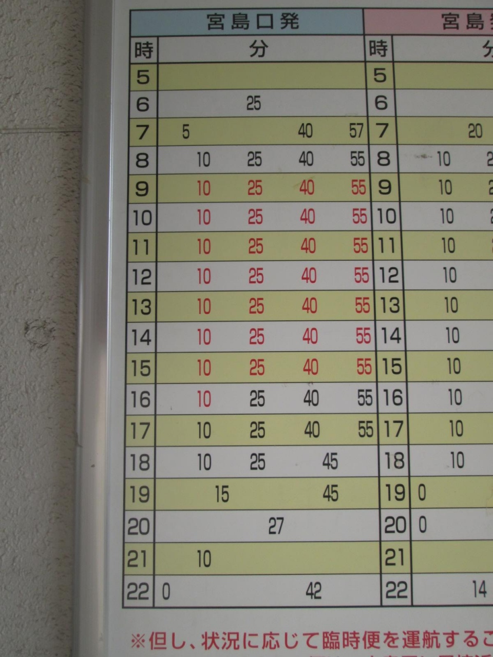 乗船時間は10分位で宮島桟橋に到着し、もう一方の宮島松大汽船フェリーの桟橋より幾分か厳島神社に近かったです。