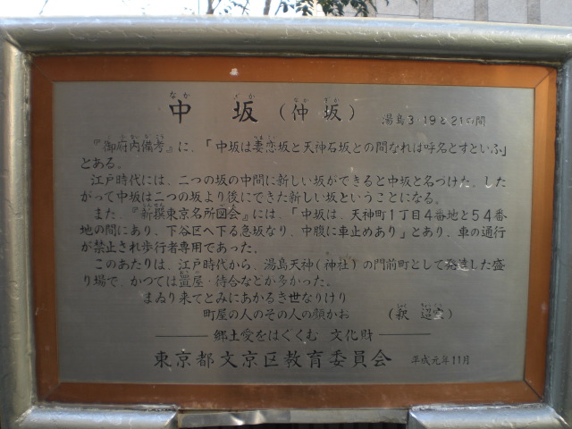 湯島天満宮の境内ばかりでなく、境内外にも坂が発達しています。