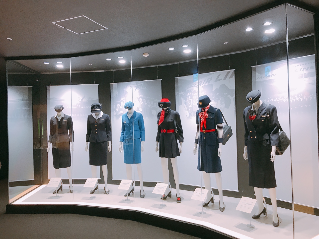新千歳空港3階フードコート近くにあります。スペースはそれほど広くないです。懐かしいCAの制服が並んでいて目を引きます。ほかに機体模型が並んでいますがやや迫力に欠けます。それもあってか滞在時間が10分弱でした。