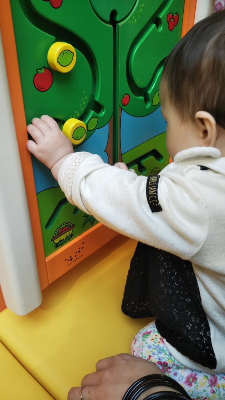広場でハイハイやつかまり立ちをしながら、お友達とふれあい、楽しみました。