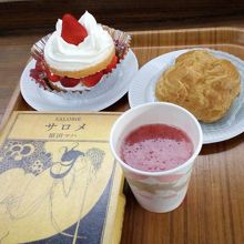 ドリンクバーには、数種類の季節の果物を使ったジュースや、コーヒー、紅茶、ココア、野菜スープが飲み放題、もちろん苺ジュースもあります。いちごサンドショートと苺ジュースの組み合わせで、ビタミンCをたっぷり補給しました。