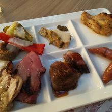 ランチビュッフェで訪れましたが、グリルコーナーは、牛ロース、豚ベーコン、羊肉、鶏肉、ソーセージなど肉の種類が豊富で、タレも6種類くらいありました。その他は天ぷらや中華の他、珍しい物としては野菜のしゃぶしゃぶがありました。
