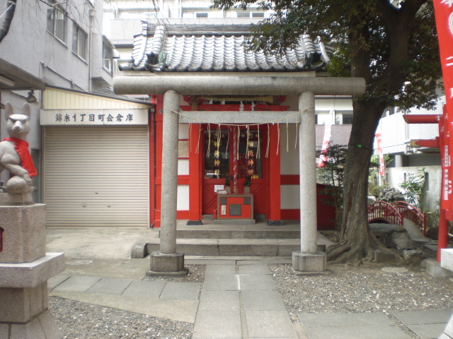 錦糸町の大横川親水公園の長崎橋のすぐ横に、津軽稲荷神社があります。