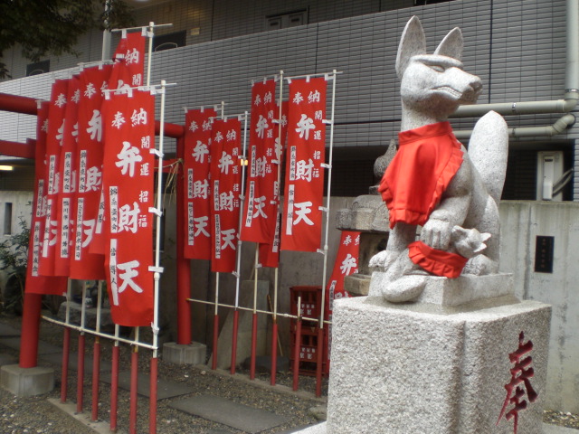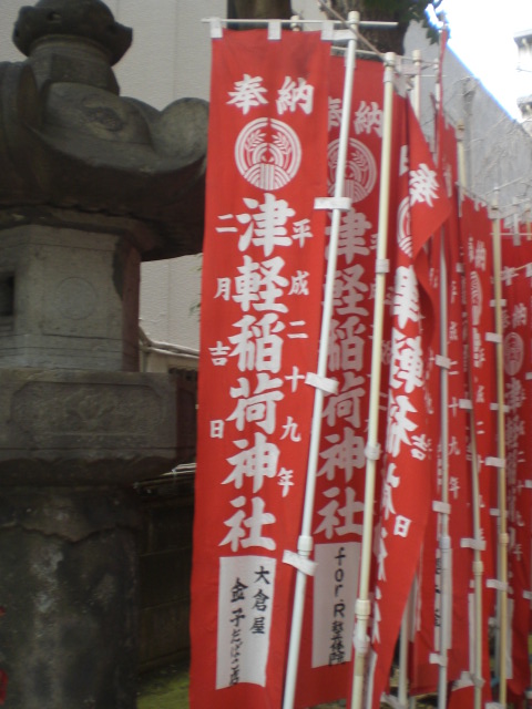 錦糸町の大横川公園の横に、津軽稲荷神社があります。錦糸町北斎通りの北側です。